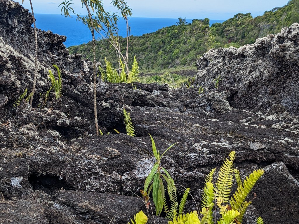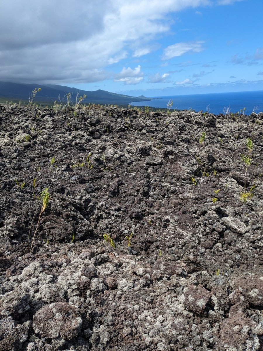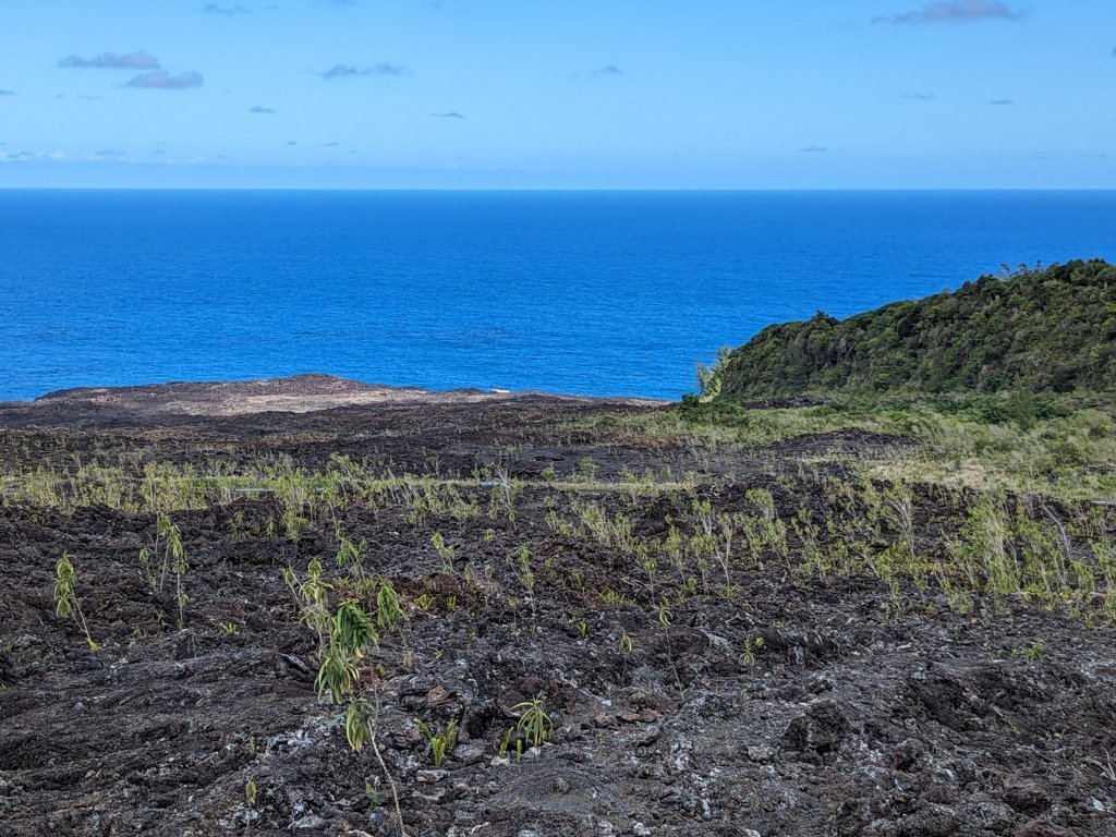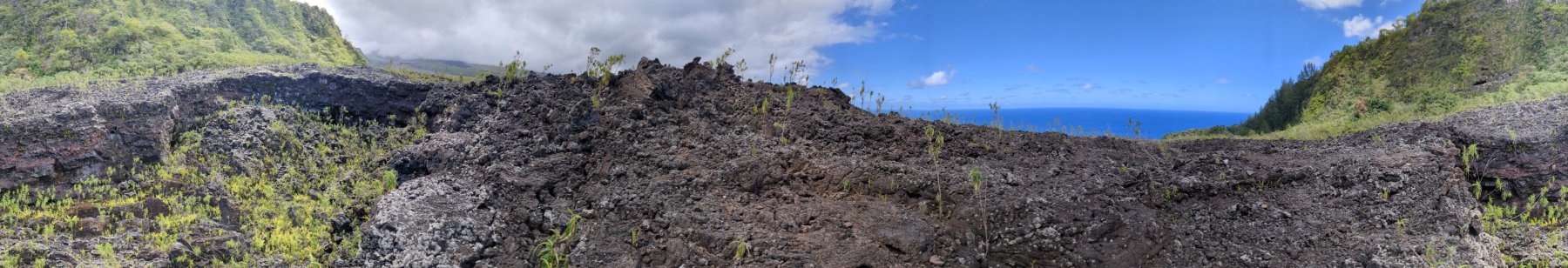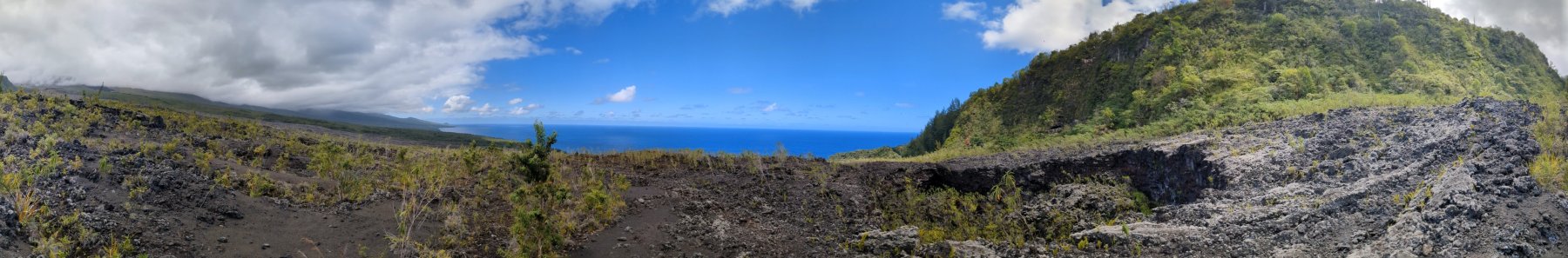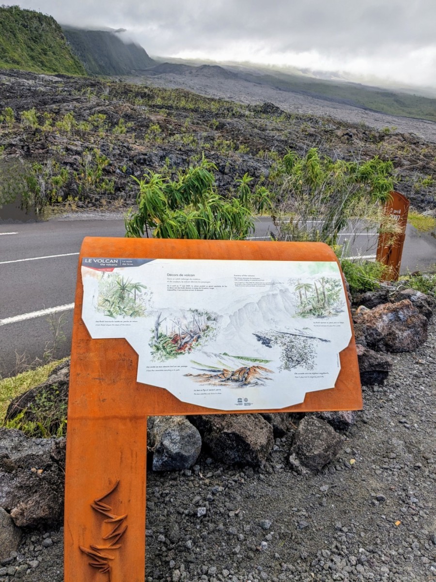 Le lieu de rendez-vous est situé le long de la route des laves (RN2), dans le grand brulé entre le village de Bois blanc et le Tremblet, sur la coulée de lave de 2007 à coté du panneaux explicatif de la formation de l’éruption. C’est le niveau le plus élevé sur la route coupant l’éruption de 2007. Photo du panneaux du point de rendez.
