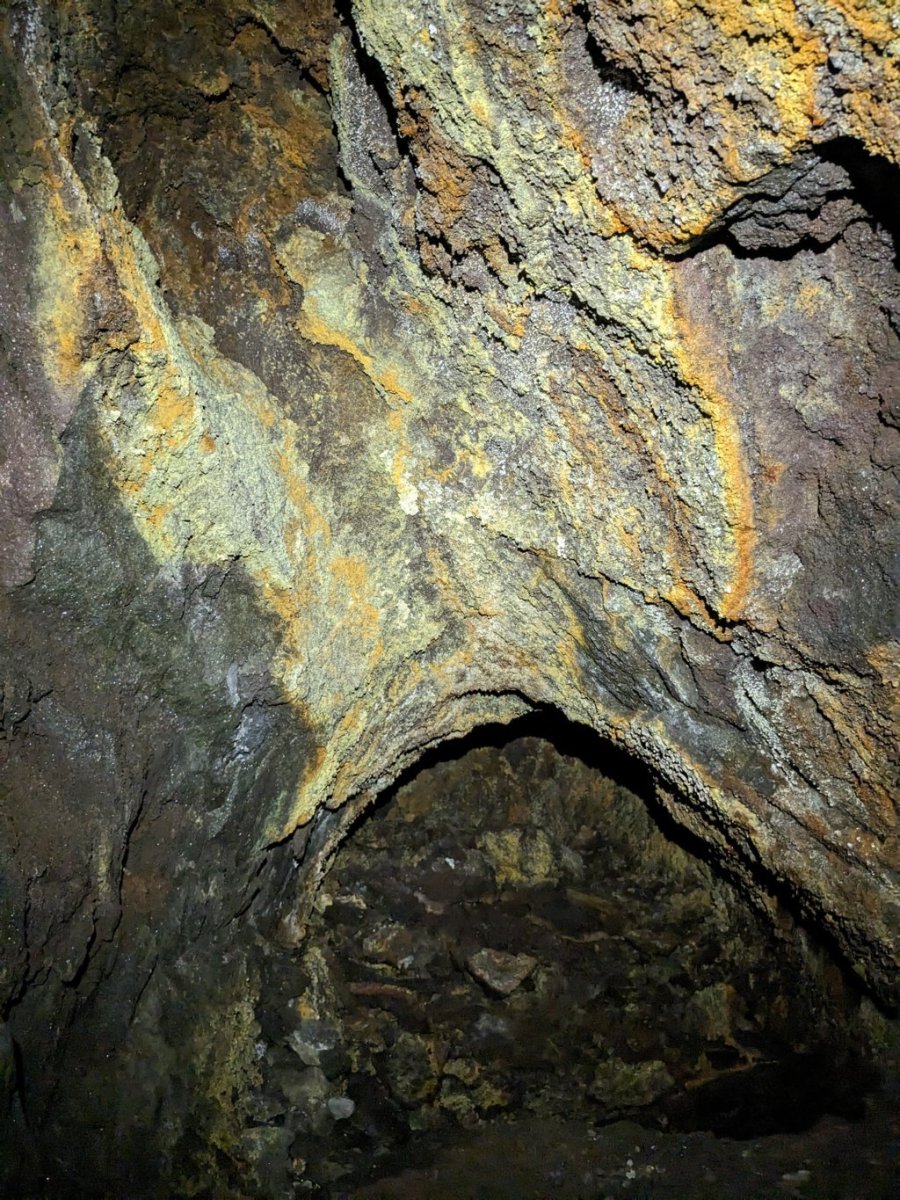 A l’intérieur du tunnel de 2007 christaux volcanique, dépot carbonaté, de gypse…. nous transporte dans un monde de couleurs volcanique s’intillant emprisonné dans la lave pour l’éternité.
